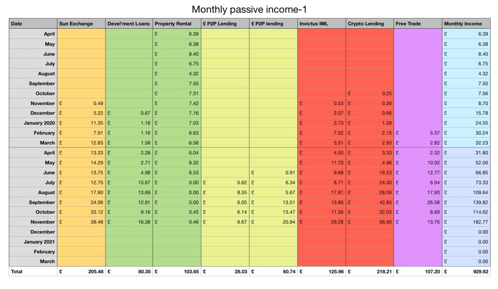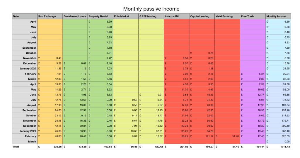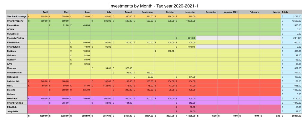 ElfinMarket. I have definitely decided to open an IFISA account with ElfinMarket in April. The income is steady and stable and will be tax free. I have check in their terms and conditions and I should be able to withdraw my current investment and transfer it over to the ISA account without much problem. Again I think a nice round number of £100 per month, interest would be nice. To achieve that I will need around £10,000 deposited based on how much I am earning on my current deposit levels.