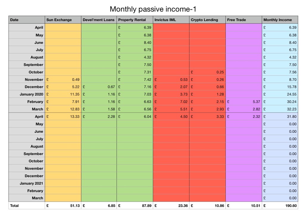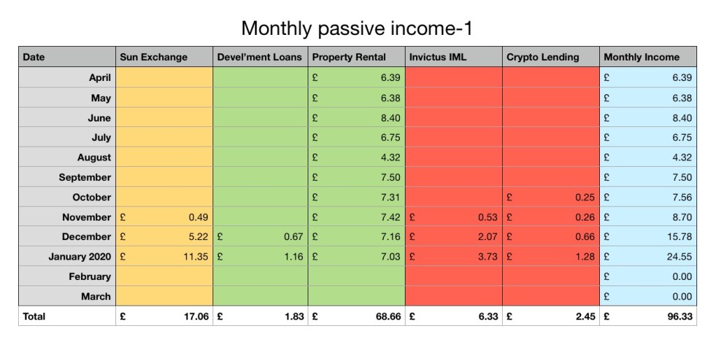 Not too much excitement in my investments this month. Another project funded on TheSunExchange. A regular £500 to CrowdProperty and £100 to ElfinMarket.