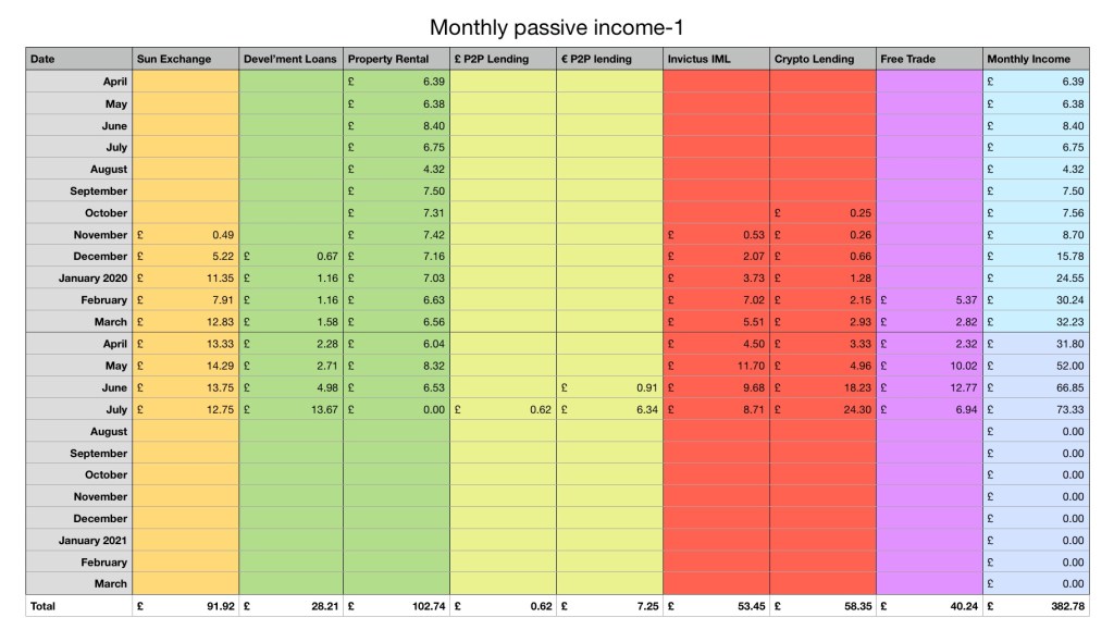 Development loans income dropped a bit this month. The big difference was with EstateGuru, it had posted a great return last month and almost nothing this month.