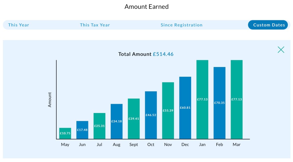 Earnings started in the IFISA in May 2021 and are paid around the middle of every month.