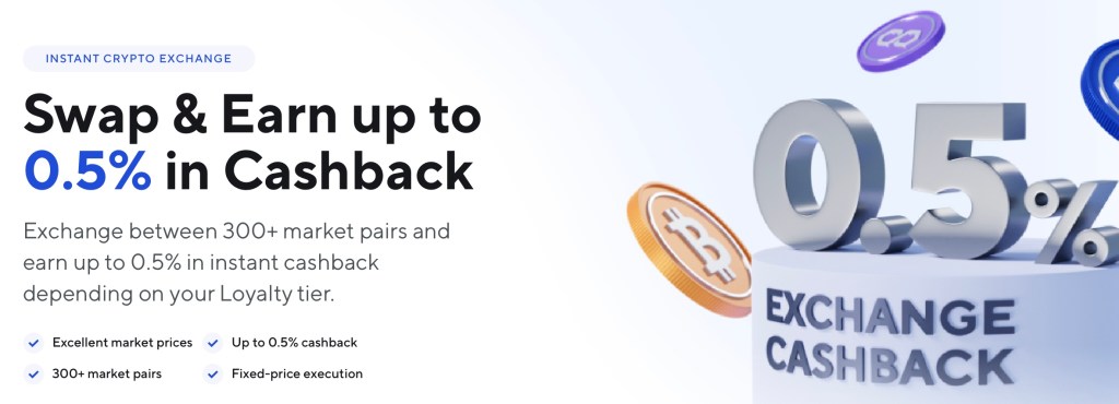 They have an in-house exchange where you can exchange your crypto assets and also gain 0.5% cash back. The rates are close to market value but there is a small spread which acts as another income stream for NEXO the business. It’s quick, simple and convenient to use.